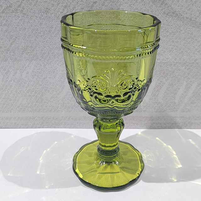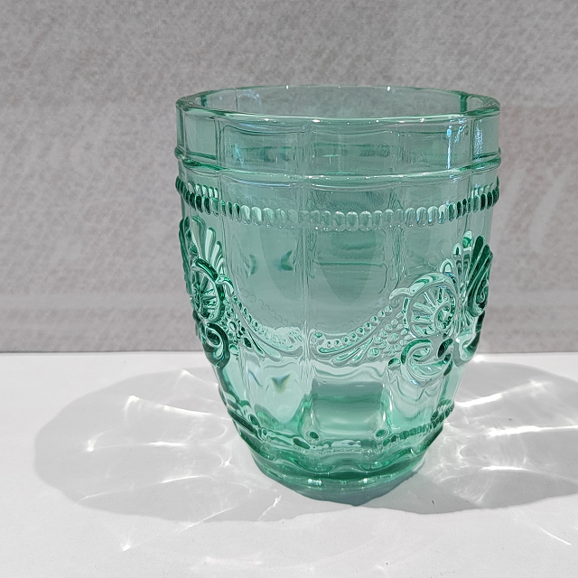 进口浮雕玻璃杯蓝绿色果汁杯家用酒杯清新水杯 250m