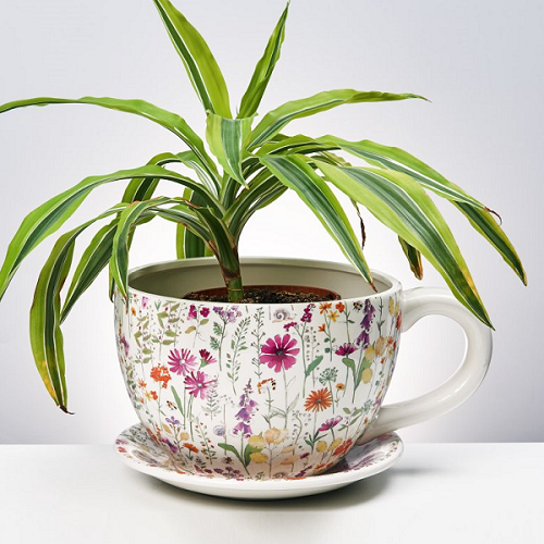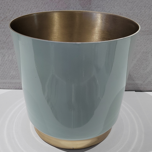 奶油色花盆与金色底盘形成和谐的组合。小巧精细,适合在室内种植小型绿植使用。